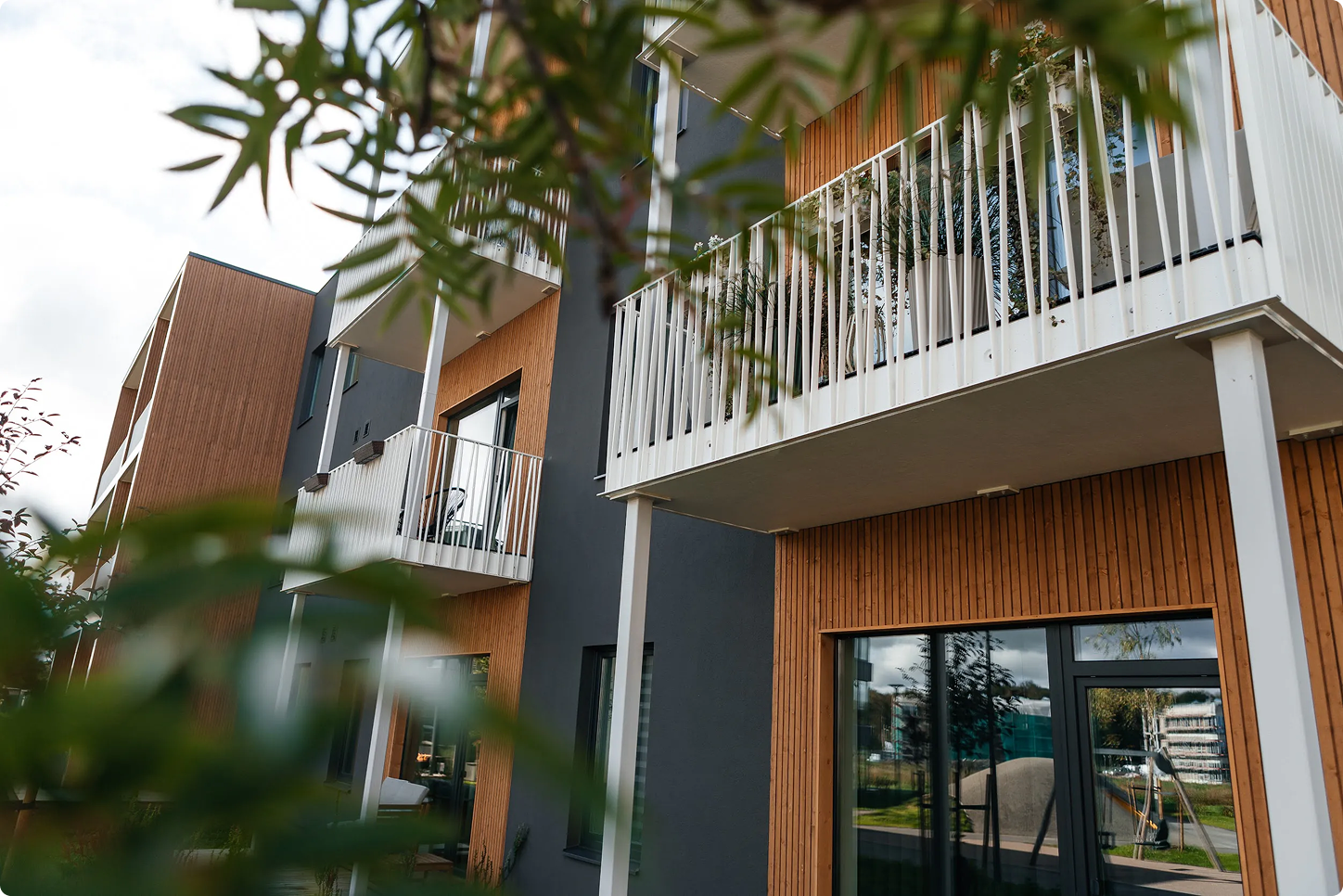 Detailideni läbimõeldud lahendused muudavad elamise mõnusalt mugavaks ja majandamise lihtsaks. Suured aknad ning avarad esimese korruse terrassid toovad igasse korterisse rohkelt loomulikku valgust.